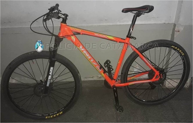La bici, estilo Mountain Bike marca Venzo, modelo Raptor, rodado 29, de color naranjado, había sido robada ayer en un domicilio ubicado en calles Núñez del Prado, entre Hipólito Irigoyen y Rivadavia, de la Ciudad de Andalgalá.