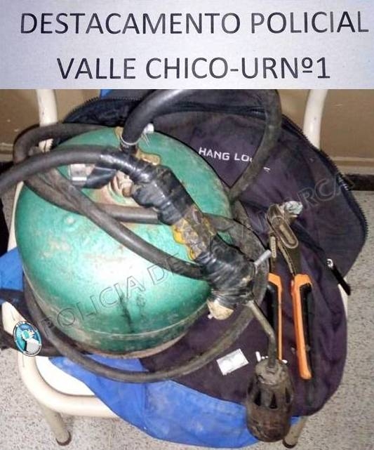 El sujeto habría sustraído una garrafa de gas de 3 kg., un soplete, y una mochila de colores marrón y negro, que en su interior contenía una llave pico de loro y un par de anteojos de sol, propiedad de un hombre de 33 años, que quedaron en calidad de secuestro.