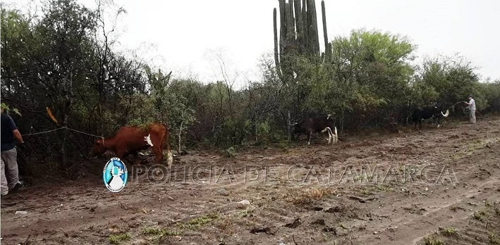Allí secuestraron tres animales vacunos: una vaca mocha de pelaje picazo, marca de fuego no legible, una vaca mocha doradilla, verija blanca, con marca de fuego no visible, y un novillo astudo, marca de fuego no visible, en cumplimiento a lo normado por la Ley Nº 4851/95.