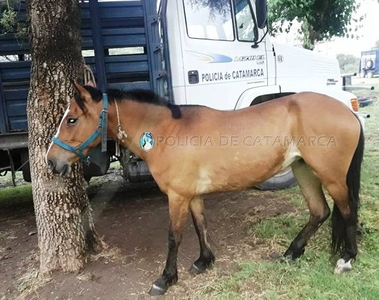 A las 19 de hoy, en la ruta nacional Nº 38 a la altura del Anexo de Ganadería “La Viñita”, el personal policial interviniente hizo lo propio, y secuestro una yegua, pelaje colorada cara blanca, crina larga, marca de fuego alfanumérica parte superior “EA” e inferior “35”.