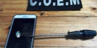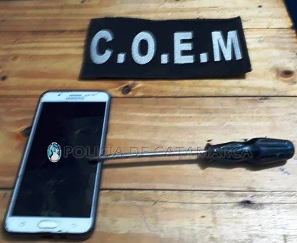 Al momento de realizarles la requisa correspondiente, los Policías encontraron entre sus prendas de vestir un destornillador y un teléfono celular Samsung J-7 Prime, de color blanco, que habría sido sustraído minutos antes en la peatonal Nº 18 del mismo barrio, a una adolescente de 16 años, por lo que quedaron en calidad de secuestro al igual que el rodado.