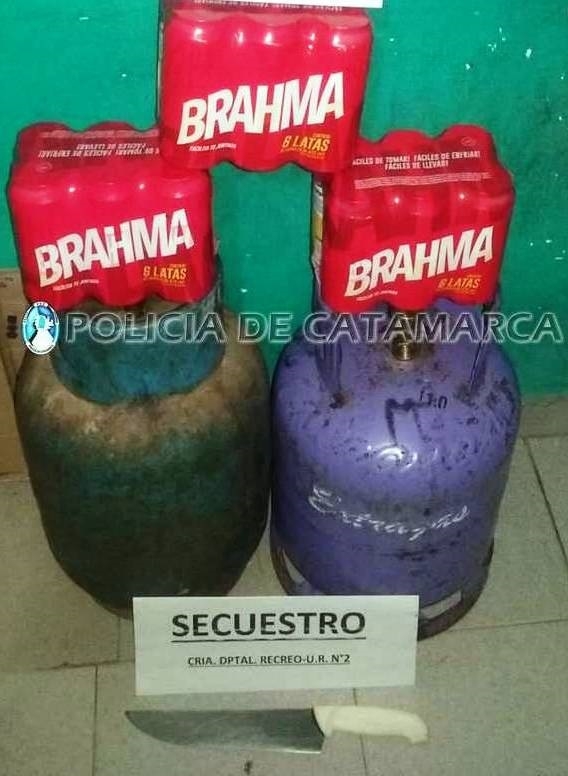 En el lugar, hicieron entrega voluntaria de dos garrafas de gas de 10 Kg., tres pack de latas de cerveza, y una cuchilla tipo carnicero, que quedaron en calidad de secuestro.