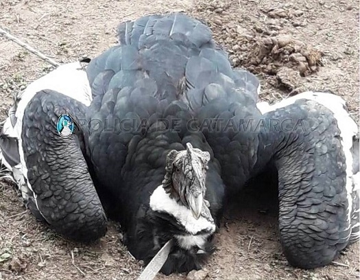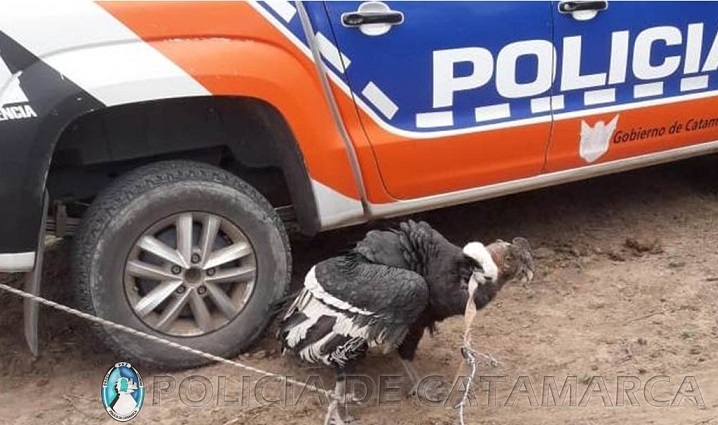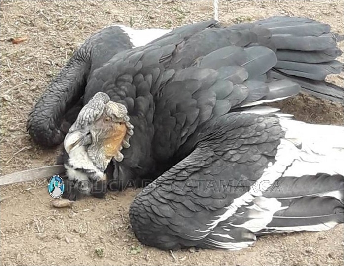 Al llegar al lugar, los Policías resguardaron un ejemplar de cóndor andino, de aproximadamente 1 mt., que habría caído en un estanque con lesiones en la cabeza y en una de las alas.