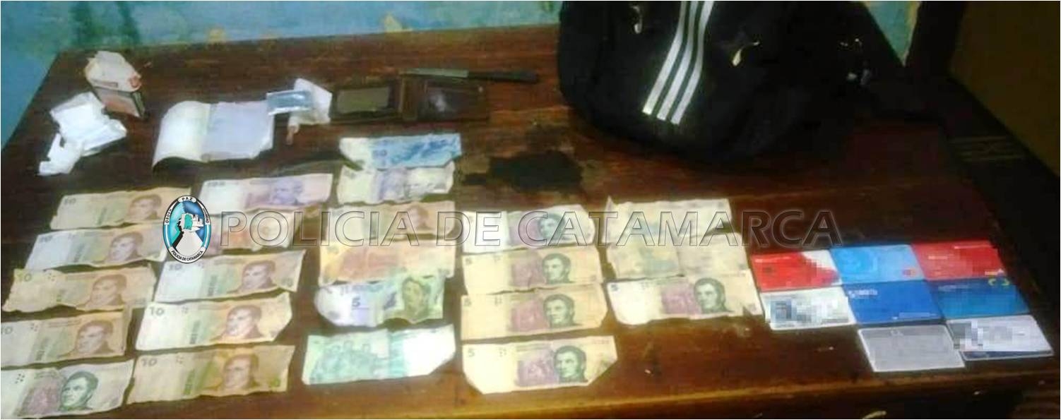 Cabe señalar que al momento de realizarle la requisa correspondiente, en el interior de una mochila de color negro, los policías encontraron una billetera que contenía la suma de 350 pesos, discriminados en billetes de distinta denominación, documentación varia y tres envoltorios de nylon, que contenían en su interior una sustancia herbácea.