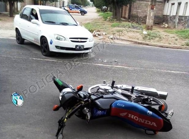 A las 11:50 de hoy, en Av. México y calle Félix Avellaneda, una Honda CG 150 cc. conducida por Sergio Reinoso (25), colisionó con un Chevrolet Corsa al mando de Luis Antonio Vélez (25).