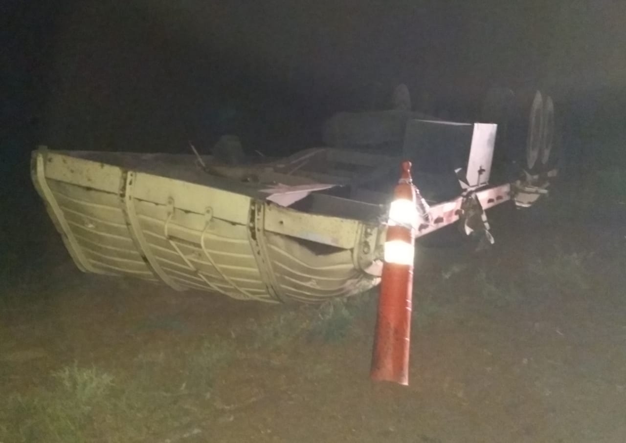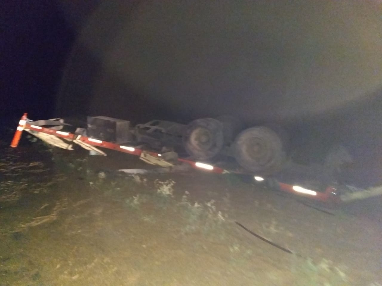 Según el chofer del camión, "un auto se me venía encima y por tratar de esquivarlo me fui a la banquina y el acoplado volcó".