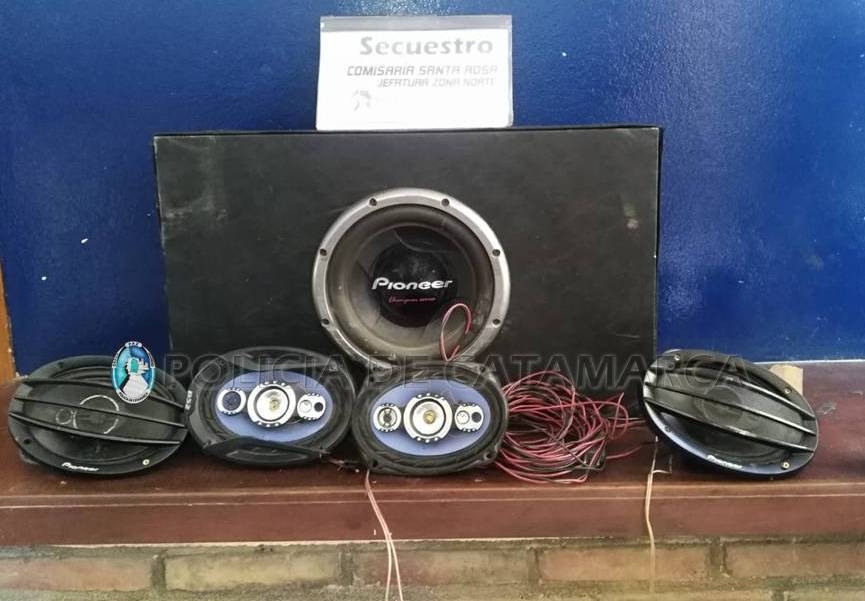 Este menor habría sido sorprendido llevando un bafle marca Pioneer, un alargue de colores negro y rojo, y cuatro parlantes, que habrían sido sustraídos del interior de un automóvil Renault Clio, de color rojo, propiedad de una mujer mayor de edad, que estaba estacionado frente a un taller mecánico de la zona, por lo que quedaron en calidad de secuestro.
