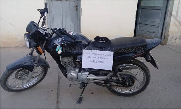 Según informó la policía, el rodado fue informado como robado, a través de una denuncia radicada por un joven de 26 años de edad, quien manifestó que el día jueves personas desconocidas le habrían sustraído una motocicleta Honda CG Titán 150 cc., de color negro, que estaba estacionada en la calle Mitre, a la altura de la Sucursal del Banco de la Nación Argentina de la Ciudad de Santa María.