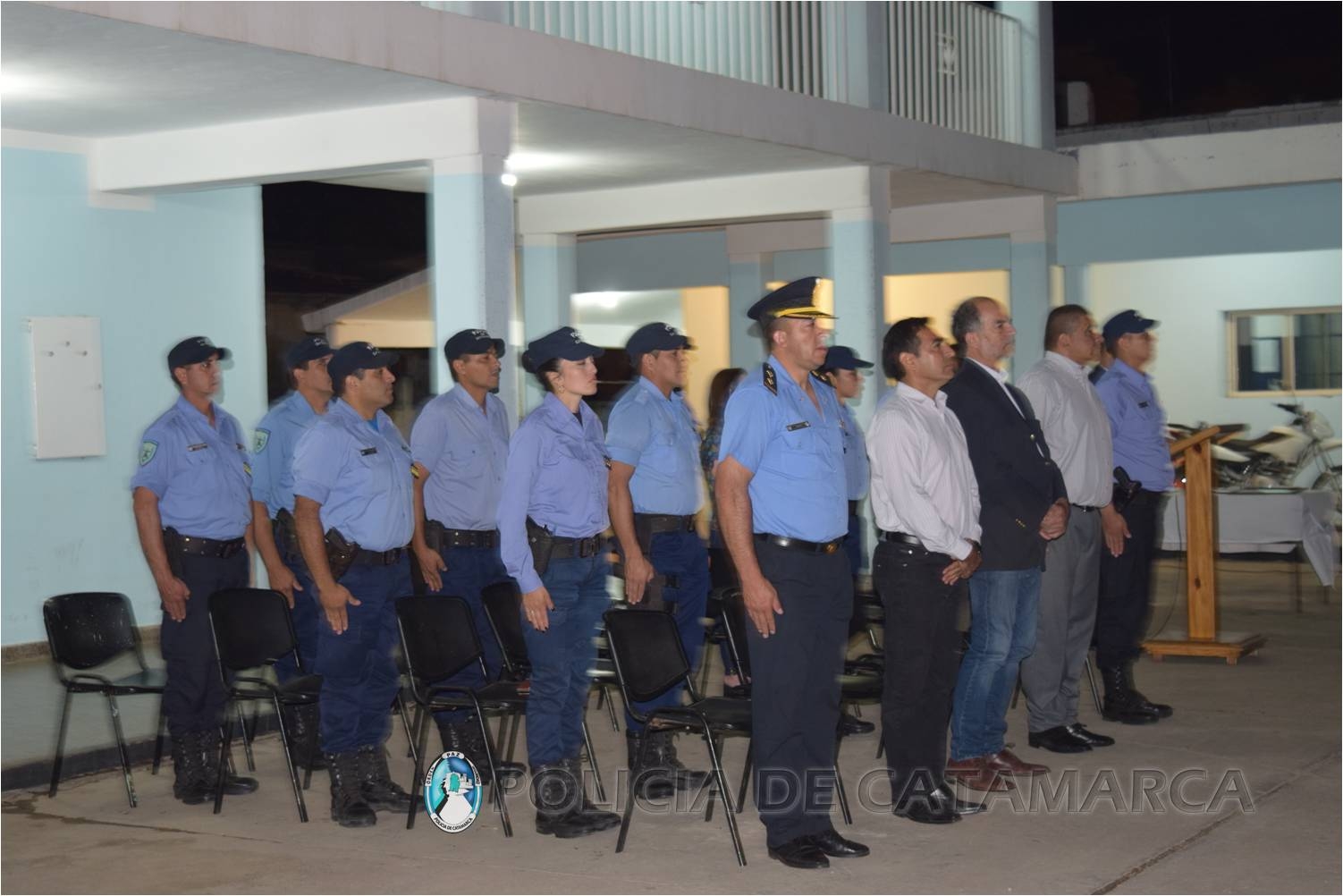 El secretario de Seguridad Democrática, Marcos Denett, presidió el acto en compañía del Jefe de Policía, Crio. Gral. Lic. Orlando Antonio Quevedo, el Director de la Escuela Superior de Policía “Feliciano de la Motta”, a cargo de la Dirección de Institutos Policiales, Crio. Insp. Ramón Antonio Ponce, el Director de la Escuela de Suboficiales y Agentes “Fray Mamerto Esquiú”, efectivos pertenecientes a esa Casa de Estudios Policiales, y personal Subalterno que participó de la capacitación.