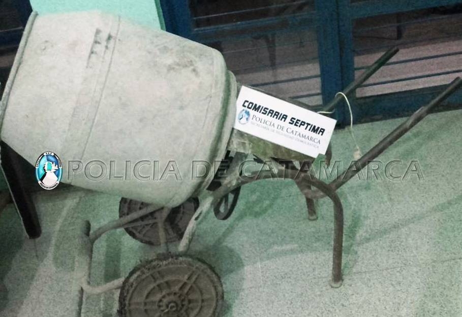 En el lugar, procedieron a la aprehensión de un joven de apellido Albarracín, de 26 años, quien habría sido sorprendido por una joven mujer de 22 años, cuando intentaba ocultar una máquina hormigonera, que quedó en calidad de secuestro, hasta determinar su legitima propiedad y procedencia.
