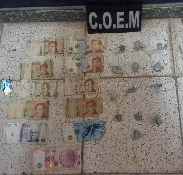Al momento de realizarles la requisa correspondiente, los efectivos encontraron entre sus prendas de vestir 13 envoltorios de nylon, que contenían una sustancia herbácea, y la suma de $280, en billetes de baja denominación.