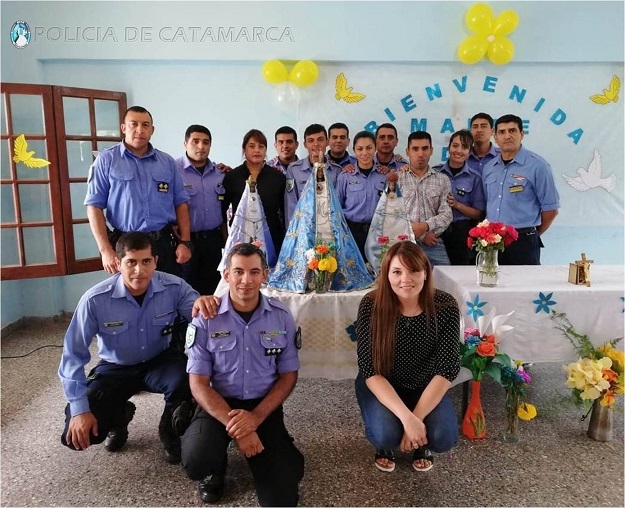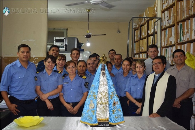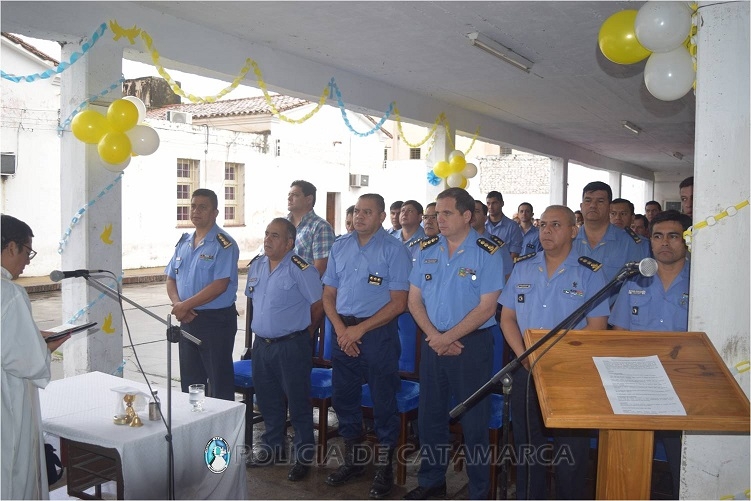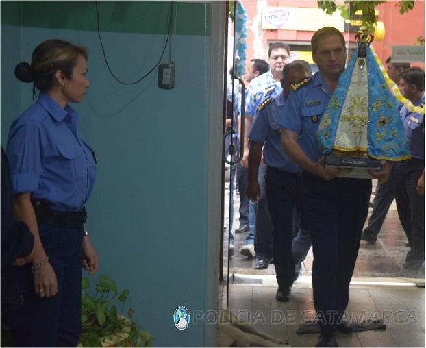 El Sub Jefe de Policía, Carlos Alfredo Kunz, recibió la Sagrada Imagen de la Madre del Valle en el ingreso de la calle Chacabuco, junto al Inspector General de Policía, Carlos Alberto Carrizo, integrantes de la Plana Mayor Policial, Oficiales Superiores, Oficiales Jefes, Oficiales Subalterno, Suboficiales, Agentes, y personal Administrativo de la Institución y la trasladaron hasta su sitial de honor, donde el Capellán Policial, Of. Insp. Pbro. Luis López oficio la Santa Misa, pidiendo al Altísimo por cada uno de los efectivos policiales y todos los integrantes de la familia Policial.