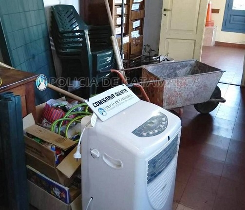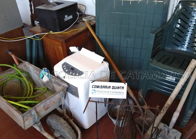 En el lugar, los Policías procedieron al secuestro de un aire portátil de color blanco, una carretilla, una parrilla, una manguera de colores verde y amarillo, una mesa con seis sillas de color verde, dos palas, un balde, un rastrillo, bolsas de cemento, cal y herramientas varias, que fueron puestos a disposición de la Justicia interviniente desde donde se indicaron las medidas a seguir.