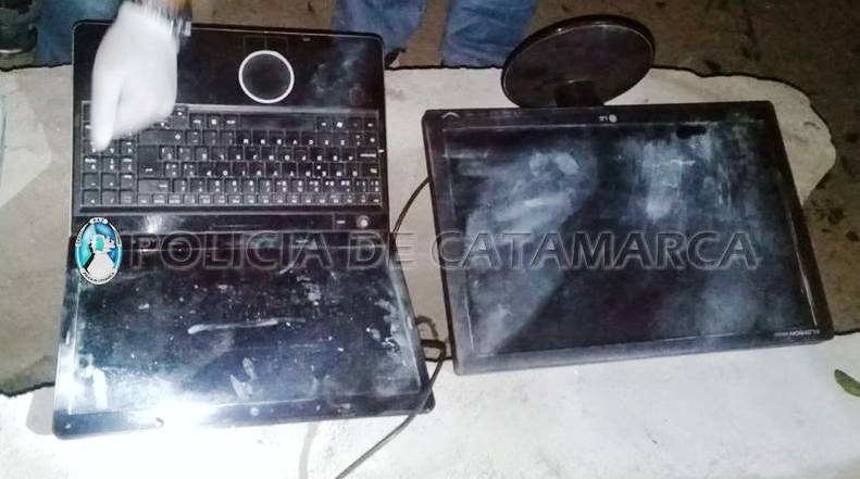 Rápidamente, los policías llegaron al lugar y observaron que personas desconocidas, al percatarse de la presencia policial, emprendieron la fuga dejando abandonado una notebook y un monitor para computadora.