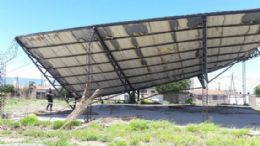 En el local comercial dedicado a la venta de electrodomésticos se encontraban varios carteles decorativos. Uno de ellos se despegó por el viento y cayó encima de un transeúnte que pasaba ocasionalmente por el lugar.