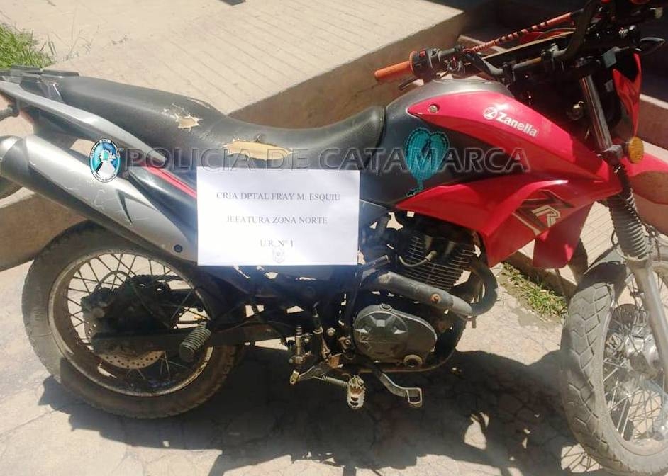 Al observar la presencia policial, intentaron darse a la fuga en una motocicleta Zanella 150 cc., dominio A041LPN, de color rojo, siendo interceptados a los pocos metros.