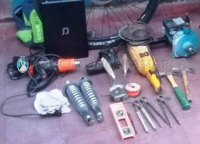 Bajo las directivas del Dr. Jorge Alberto Flores, Fiscal de dicha Circunscripción Judicial, los policías irrumpieron en una vivienda del barrio Virgen del Valle S/Nº, propiedad de una familia de apellido Chaile, donde secuestraron dos máquinas hormigoneras, una bomba de agua y un taladro de mano; mientras que en otro inmueble del barrio El Monumento, donde reside una familia de apellido Ignes, los efectivos hicieron lo propio con una notebook marca Compact, de color negro, una amoladora amarilla, una pistola de calor, marca Gamma, de colores negro y anaranjado, y varias herramientas.