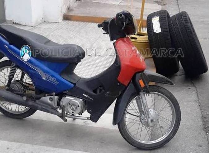 Minutos más tarde, por requerimiento del Comando Radioeléctrico, los policías llegaron hasta la esquina de Avenida Alem y calle San Martin, donde un efectivo policial que cumplía servicio adicional en una estación de servicio observó cuando dos hombres circulaban a bordo de una motocicleta Motomel 110 cc., de colores azul y rojo, y por causas que se tratan de establecer el conductor perdió el control del rodado y cayeron a la cinta asfáltica.
