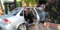 El accidente fue protagonizado por un automóvil Chevrolet Corsa Classic, dominio JCP-744, de color gris, conducido por Luis Gabriel Armoya (23), acompañado por Nazarena López (23), y Nahuel José Obregón (24), que por causas que se tratan de establecer, colisionó con otro Chevrolet Corsa Classic gris, dominio LCS-817, al mando de Mariana Soledad Melnik (38), en compañía de tres niños de 4, 7 y 8 años, que terminó chocando contra las rejas de un domicilio del lugar.