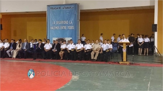 La ceremonia, fue presidida por el Sr. Secretario de Seguridad Democrática, Dr. Marcos Denett, acompañado por el Sr. Jefe de Policía de la Provincia, Crio. Gral. Lic. Orlando Antonio Quevedo, la Sra. Secretaria de Estado de Cultura de la Provincia, Lic. Jimena Moreno, el Director de Planes de Seguridad, Crio. Gral. (RE) Lic. Manuel Américo Aibar, el Director de Seguridad Vial, Dn. Gustavo Romero, el Director del Servicio Penitenciario Provincial, Dr. Mario Romero, el Director de la Escuela Superior de Policía, a cargo de Institutos Policiales, Crio. Insp. Ramón Antonio Ponce, el Rector del IES Policial, Crio. Insp. Lic. Domingo Reinoso, el Director de la Escuela de Cadetes, Crio. Insp. Walther Marcelo Herrera, el Director de la Escuela de Suboficiales y Agentes, Crio. Walther Fabián Quiroga, representantes de la Agrupación VIII Catamarca de Gendarmería Nacional, de la Delegación Catamarca de la Policía Federal Argentina, de la Policía de Seguridad Aeroportuaria, miembros de la Plana Mayor Policial, Oficiales Superiores, Jefes, Subalternos, Suboficiales, Agentes, Cadetes, Invitados especiales, público en general.
