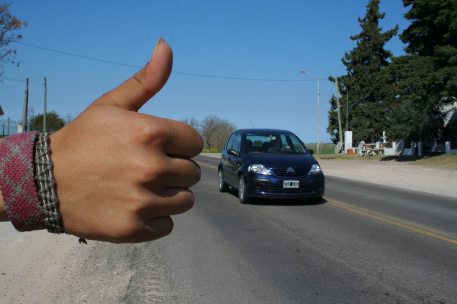 En el lugar, observaron que un sujeto realizaba señas a los conductores de vehículos que pasaban ocasionalmente por el lugar, intentando viajar junto a un niño de 6 años.