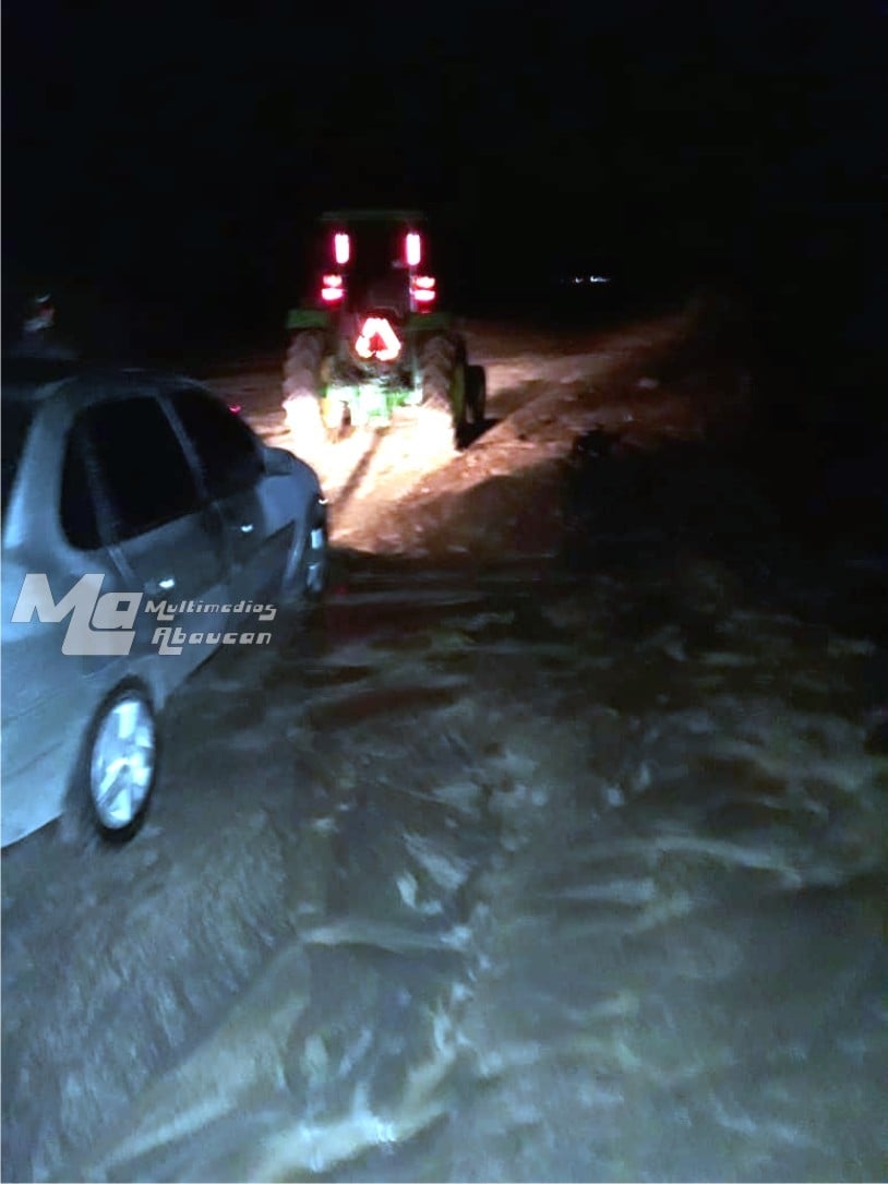 Luego de varias horas en el lugar, con una fuerte tormenta eléctrica, en medio de la nada e intentando comunicarse, pudieron contactarse con el delegado Municipal de Palo Blanco quien acudió en su vehículo 4x4 pero fue imposible sacar los autos del barro.
