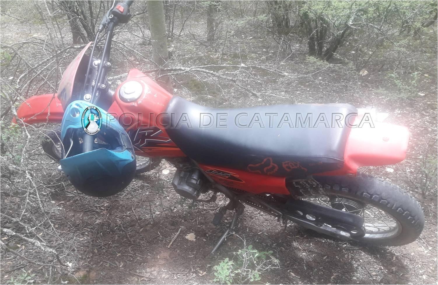 En el lugar, procedió al secuestro de una motocicleta Honda XLE 125 cc., dominio 409-CNH, de color rojo, que estaba abandonada oculta entre la maleza del lugar.