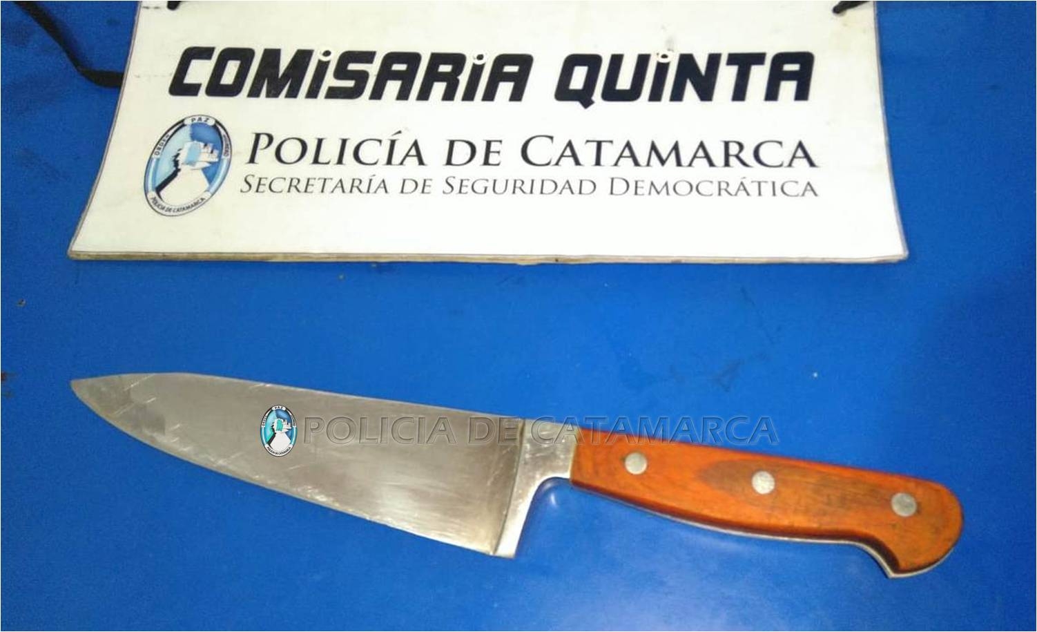 En el lugar, procedió a la aprehensión de un hombre de apellido Leiva, de 42 años, quien habría amenazado de muerte a integrantes de su familia con una cuchilla tipo carnicero, que quedó en calidad de secuestro.