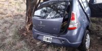 El auto se fue a la banquina e impactó de lleno contra un árbol.