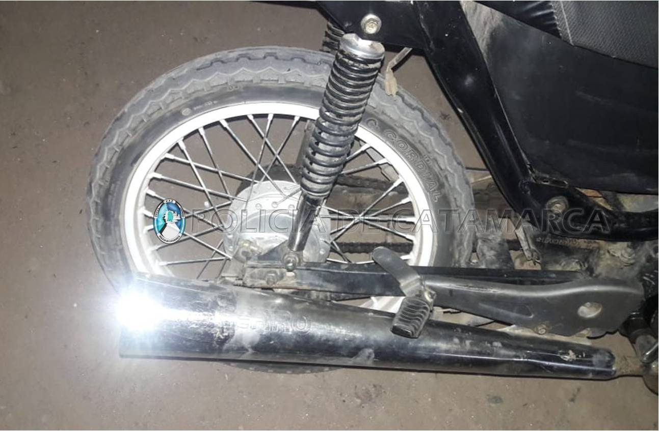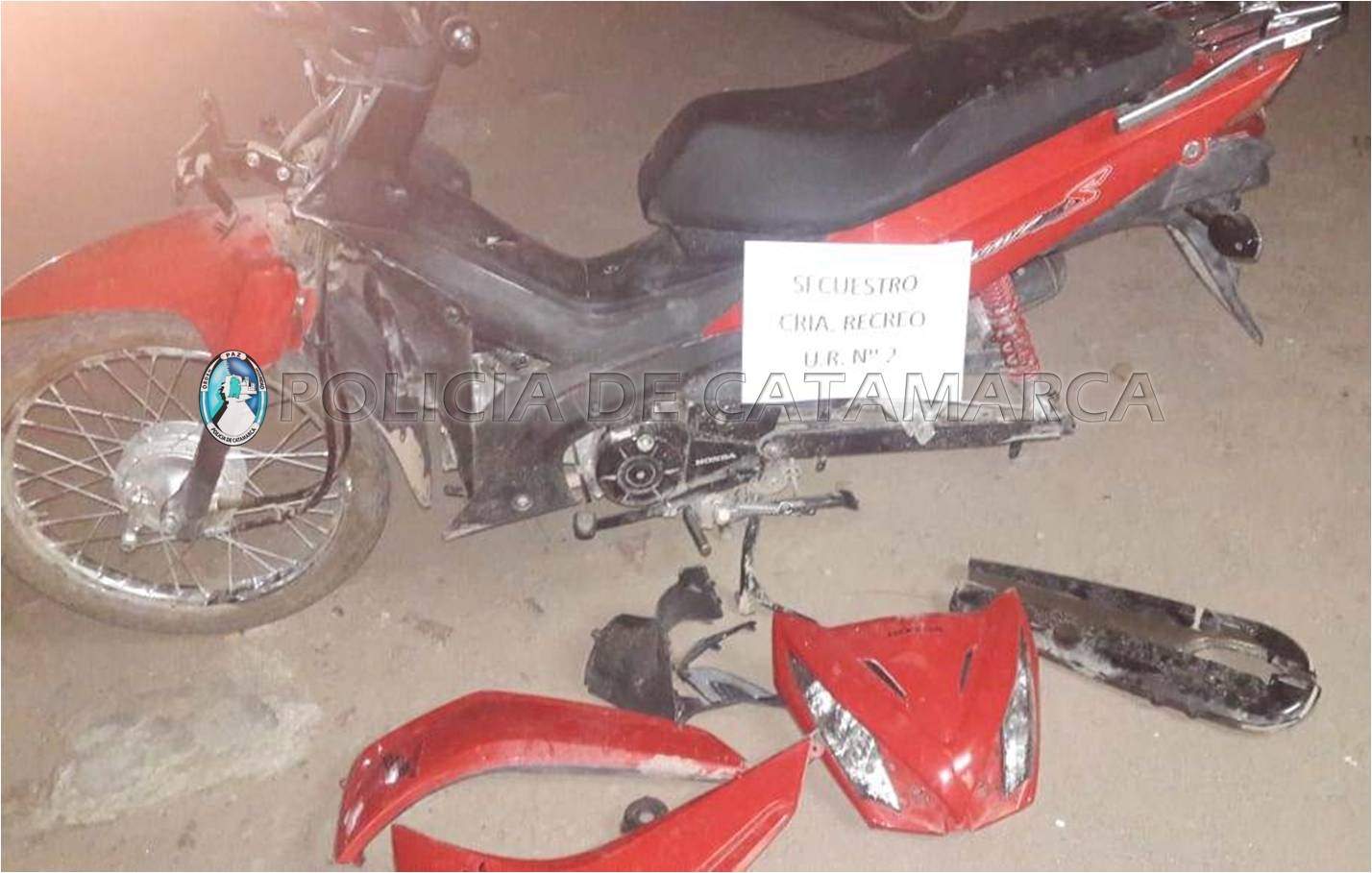 Luego de una ardua tarea investigativa, en la madrugada de hoy miércoles, a las 00.30, personal de la Comisaría Departamental Recreo logró recuperar el rodado sustraído que estaba oculto entre la maleza de un descampado ubicado en la parcela sur de esa ciudad, del departamento La Paz, inmediaciones al barrio Horminor, notando que le faltaba una de las ruedas y los posa pie.