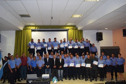 Durante el acto, que fue presidido por el Secretario de Seguridad Marcos Denett, acompañado por el Jefe de Policía, Orlando Antonio Quevedo, el Director de Planes de Seguridad, Américo Aybar, el Secretario de Seguridad Municipal, Carlos Zurita; el Jefe de Zona “F” Pomán, Raúl Alberto Cedrón, el Director de la Escuela Superior de Policía, a cargo de Institutos Policiales, Ramón Ponce, y el Director de la Escuela de Suboficiales y Agentes, Comisario Walther Quiroga, se hicieron entrega de los certificados correspondientes a 40 policías, que acreditan que dichos efectivos culminaron satisfactoriamente la capacitación.
