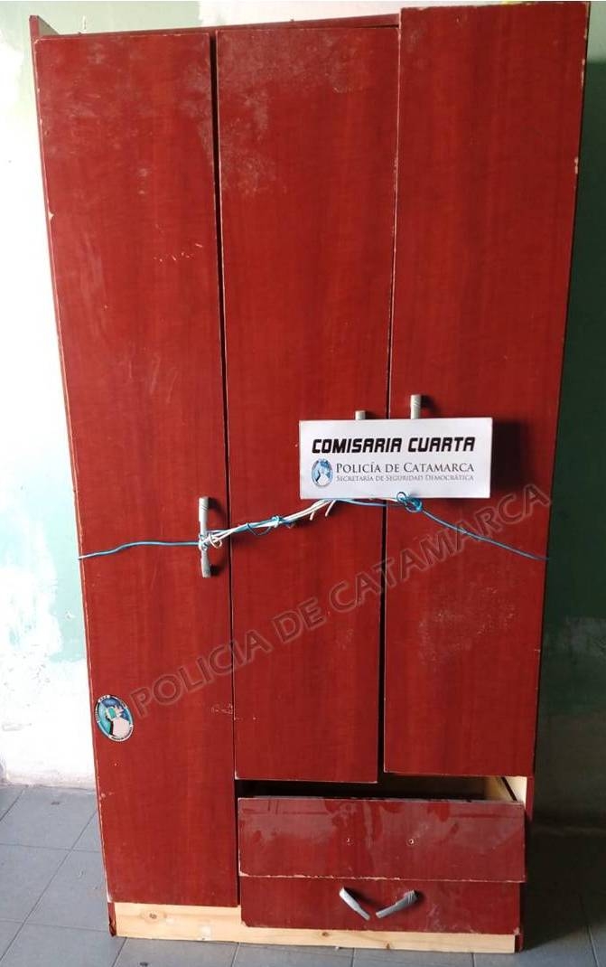 Al llegar al lugar, el personal policial interviniente encontró oculto entre la maleza, un Placard marrón de tres puertas, y un reproductor de DVD Stromberg Carlson negro, que quedaron en calidad de secuestro hasta determinar su legítima propiedad y procedencia.