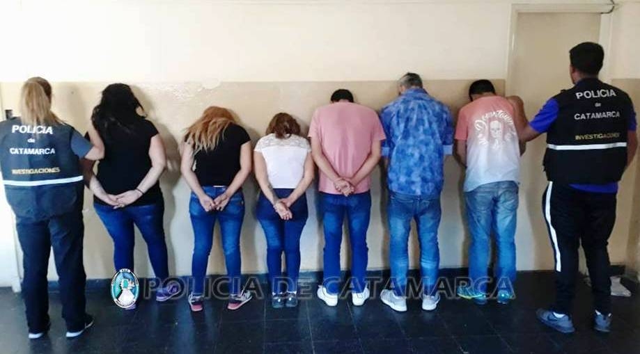 En la tarde de este sábado, a las 14.40, tras una ardua tarea investigativa, personal de la División Investigaciones de la Policía se constituyó en la esquina de la Avenida Güemes y calle Salta, donde procedió a la aprehensión de tres mujeres de apellidos Lazarte (30), Prado (35) y Fernández (42), dos hombres de apellidos Roldán (32) y Abregu (36), y de un joven de apellido Echenique (27), todos oriundos de Tucumán, quienes serían los presuntos autores de los hechos investigados.