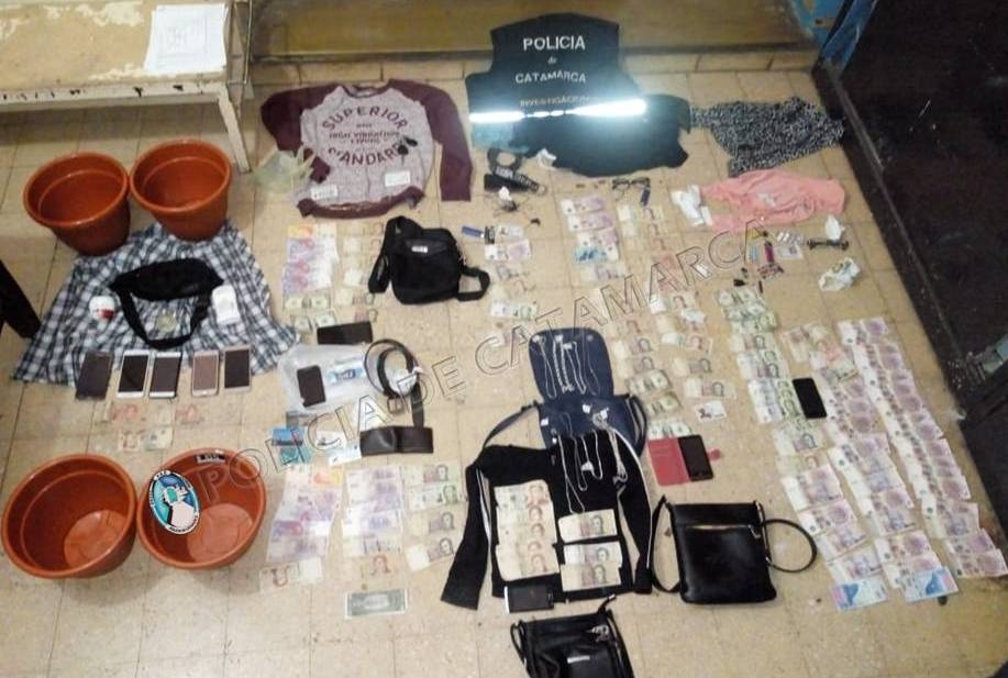Minutos más tarde, los investigadores llegaron hasta una playa de estacionamiento ubicada en la calle Salta, entre Mate de Luna y Zurita, donde inspeccionaron una camioneta Chevrolet Meriva gris, y encontraron cuatro macetas plásticas, 11 teléfonos celulares de distintas marcas y modelos, 12 cadenas de plata, varios elementos de bijouterie, prendas de vestir varias y la suma de 6 mil pesos en efectivo, que serían producto de los ilícitos denunciados, por lo que quedaron en calidad de secuestro al igual que el rodado mencionado.