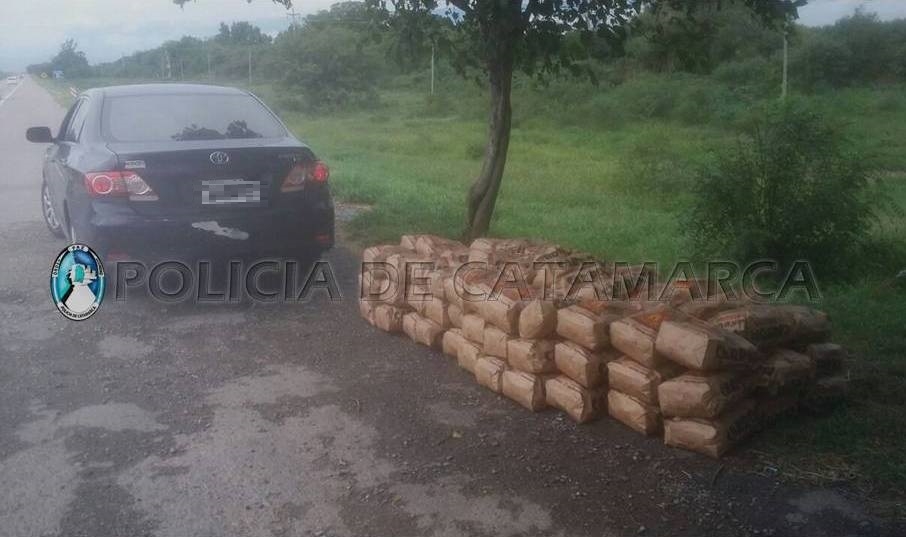 Efectivos de la Dirección de Seguridad Vial procedieron a controlar un automóvil Toyota Corolla, de color azul, conducido por un hombre de apellido Robles, quien transportaba 95 bolsas de carbón por 3 kilos, sin la guía de habilitación correspondiente.