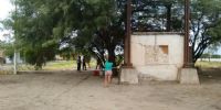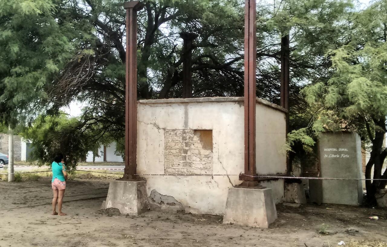 La vivienda es una vieja "bomba" cargadora de agua de los trenes, que fue convertida en vivienda, y está ubicada a escasos metros del Templo Parroquial y el Integrador donde fue el Festival Infantil del Cabrito, anoche.