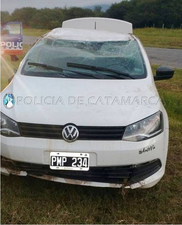 Hoy, a las 6:20, en la ruta provincial Nº 1 a la altura del paraje El Rodeo Grande a 15 kilómetros de Los Varelas, un VW Voyage al mando de Claudio Antonio Lujan (38), volcó al costado de la banquina.