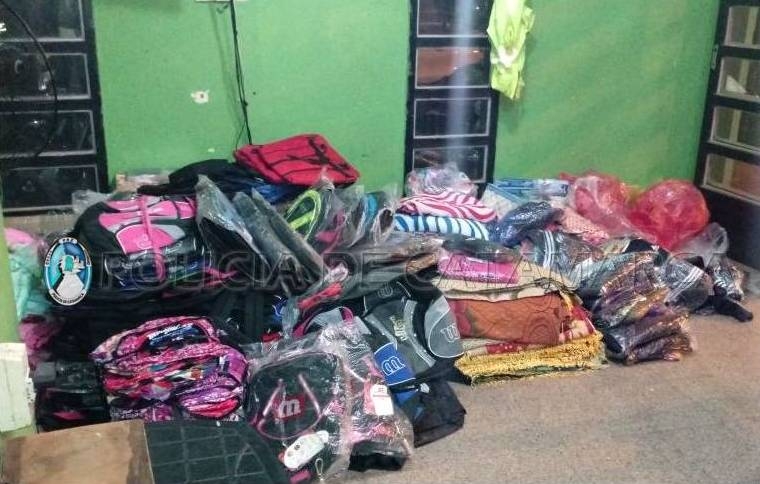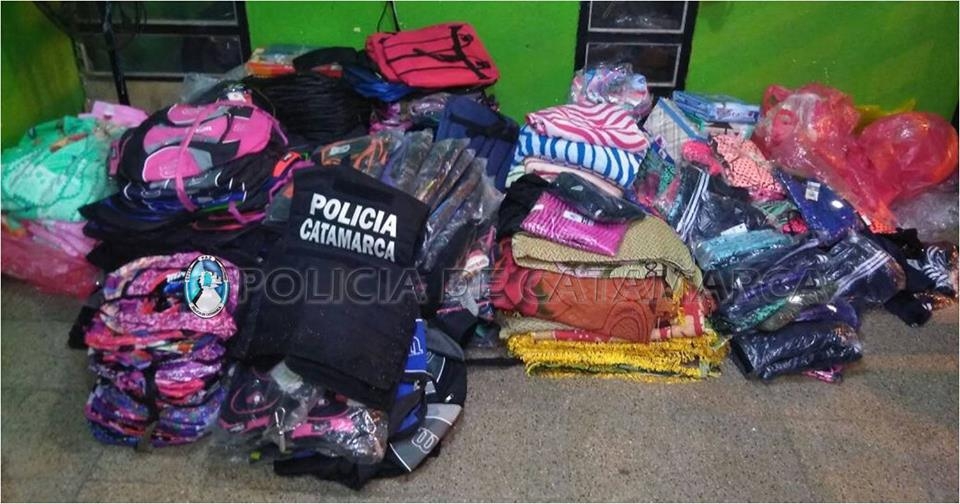 En el vehículo, observaron que transportaba 6 juegos de té, 6 termos, 13 toallas, 160 repasadores, 10 juegos de sabanas, 46 pares de medias, 17 cubrecamas, 17 fundas de almohada, 6 cortinas, 36 calzas dama, 242 mochilas, 60 conjuntos deportivos y 20 frazadas para bebes sin la documentación correspondiente que acredite su legítima propiedad y procedencia.