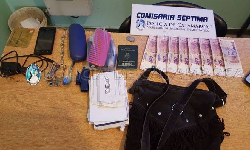 Minutos después, los policías identificaron a la persona iniciando una persecución que finalizó en un domicilio del barrio Eva Perón de la manzana 24, donde procedieron a la aprehensión de un joven de apellido Villacorta de 20 años, al secuestro de una motocicleta Yamaha Crypton, de color rojo, una réplica de arma de fuego de color negro y una cartera negra, conteniendo en su interior la suma de 800 pesos, un teléfono celular marca Samsung J3, de color negro, un cargador de celular, llaves, bijouterie y documentación varia a nombre de la damnificada.