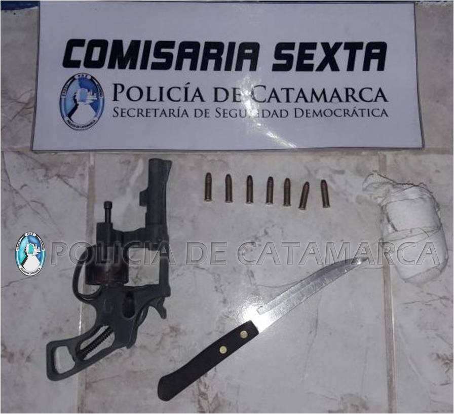 Finalmente, los policías procedieron a la aprehensión de un joven de 27 años, de apellido Cuello, quien momentos antes arrojó un cuchillo tipo tramontina, un revólver calibre 22, marca Galand, y siete cartuchos del mismo calibre que quedaron en calidad de secuestro.