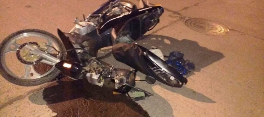 En el lugar, un automóvil Chevrolet Prisma, dominio NGR-566, de color gris, conducido por Julio Eduardo Barletta (69), por causas que se tratan de establecer, colisionó con una motocicleta Kymco 110 cc., de color negro con gris, al mando de Leonel Pacheco (23), acompañado de Florencia Ayelen Charriol (23).