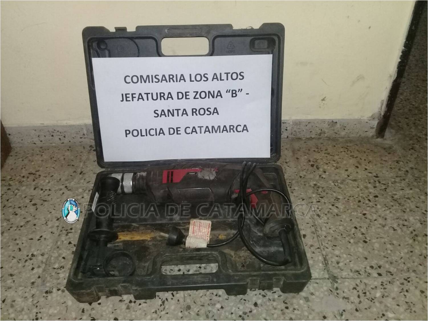 Tas realizar una ardua tarea investigativa, los efectivos se constituyeron en el paraje El Tala, Santa Rosa, donde un hombre de 30 años hizo entrega voluntaria de un taladro eléctrico Skil, de color negro el cual quedó en calidad de secuestro en la dependencia policial, a disposición de la Fiscalía de Instrucción en turno.