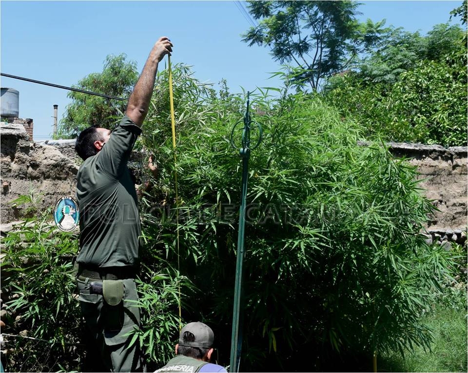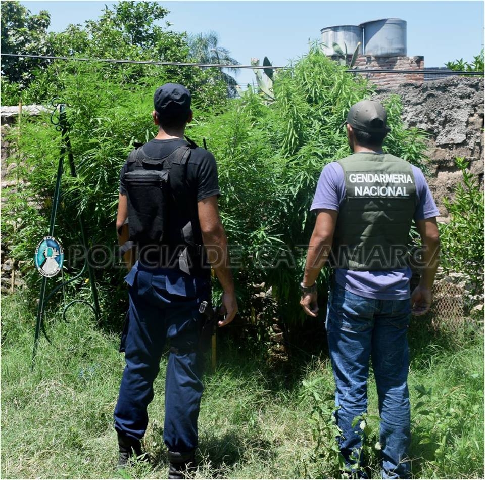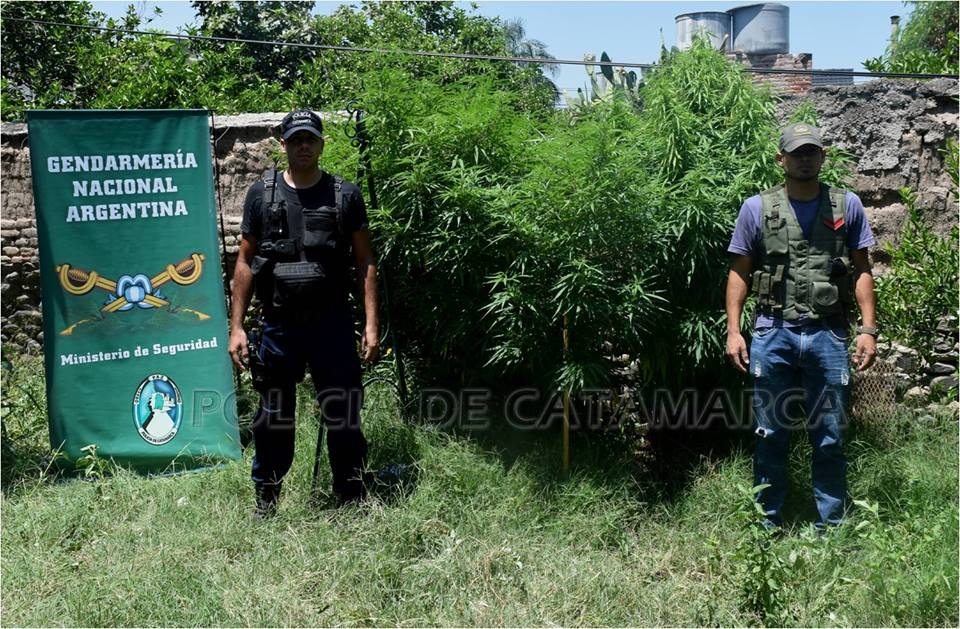 De inmediato, el personal policial interviniente solicitó la presencia de personal de la Dirección de Drogas Peligrosas de la Policía de la Provincia, quienes trabajaron conjuntamente con Gendarmería Nacional Argentina, Agrupación VIII Delegación Catamarca, quienes tras realizar la prueba de campo correspondiente, lograron establecer que se trataba de plantas de marihuana, la cuales median entre 2,29 y 2,30 metros de alto.