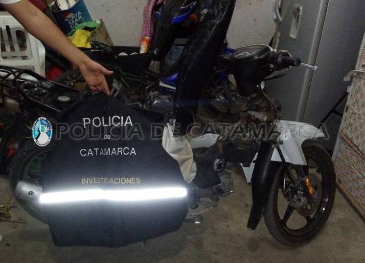 En la denuncia, una mujer mayor de edad manifestó que personas desconocidas habrían sustraído una motocicleta Yamaha New Crypton 110 cc., de colores blanco y negro, personal de la División Investigaciones de la Policía de la provincia materializó una orden de allanamiento en un domicilio ubicado en el barrio Los Bajos, La Costanera de la localidad de Sumalao, Valle Viejo.