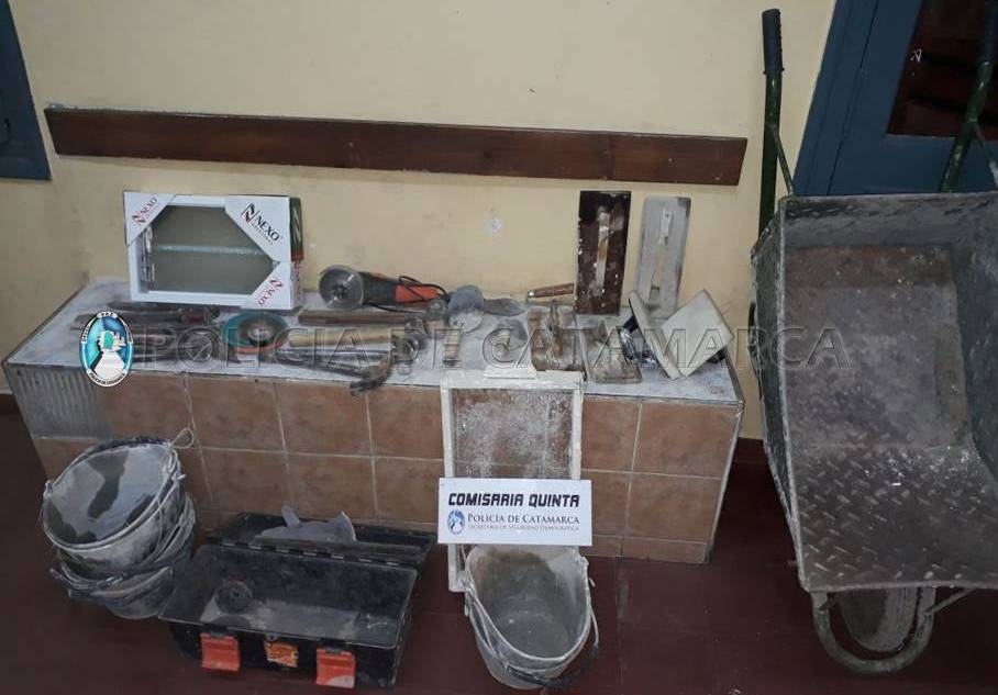 En el lugar, aprehendieron a un joven de apellido Salas, de 18 años, quien habría sido sorprendido mientras intentaba sustraer de una obra en construcción cargando en una carretilla; seis fratachos, seis baldes de albañil, una caja de herramientas, tres cucharas de albañil, dos mazas, dos martillos, dos plomada, una amoladora, de color naranjado con negro, un cernidor, dos tenazas, tres cortafierros y una caja de cerámicos, y al notar la presencia policial intentó darse la fuga siendo interceptado a los pocos metros.