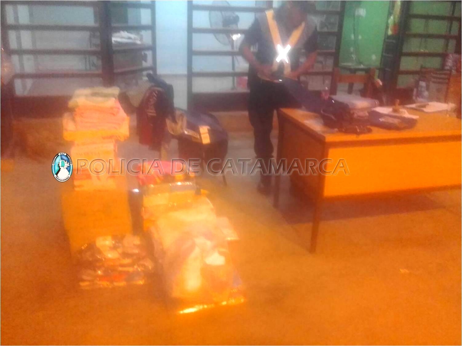 Al inspeccionar el rodado, los efectivos observaron que transportaba en el interior del habitáculo cuatro termos, 7 docenas de cubiertos, cuatro pavas eléctricas, una pava de acero inoxidable, cuatro manteles, 5 toallones, tres docenas de tazas, 240 focos, tres juegos de sabanas, 12 corpiños, tres docenas de bombachas, una docena de toallas de mano, 18 repasadores, 7 docenas de soquetes, cuatro docenas de bóxer, 13 pantalones de jeans, una calza, dos campera de jeans, 8 camperas deportivas, todo de origen extranjero sin la documentación correspondiente.