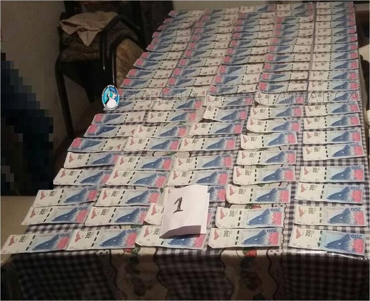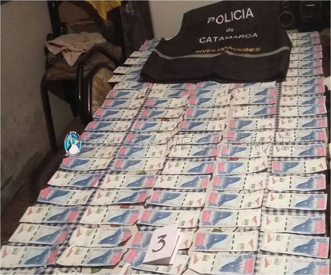 Fue en una vivienda ubicada en la calle Comodoro Rivadavia del barrio San Ramón, propiedad de la familia Sosa, donde los investigadores recuperaron 74 mil pesos en efectivo, en billetes de 200 pesos, que estarían relacionados con el ilícito, mientras que los moradores quedaron supeditados a la prosecución de la causa.