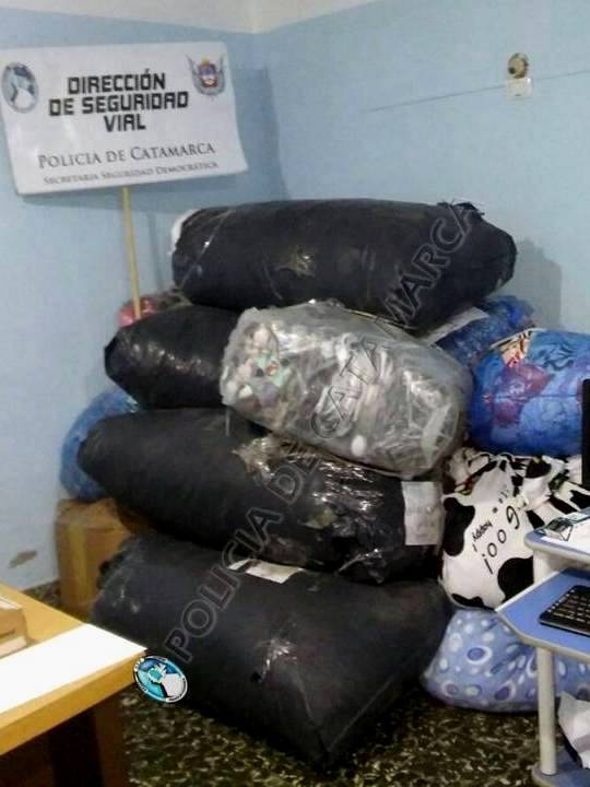 En el puesto caminero El Portezuelo, Valle Viejo, procedieron a inspeccionar un colectivo marca Volvo, dominio HPZ-012, de color amarillo, proveniente de la provincia de Tucumán, conducido por un hombre de apellido Correa, de 39 años, y observaron que transportaba varios bultos conteniendo ropa de origen extranjero.