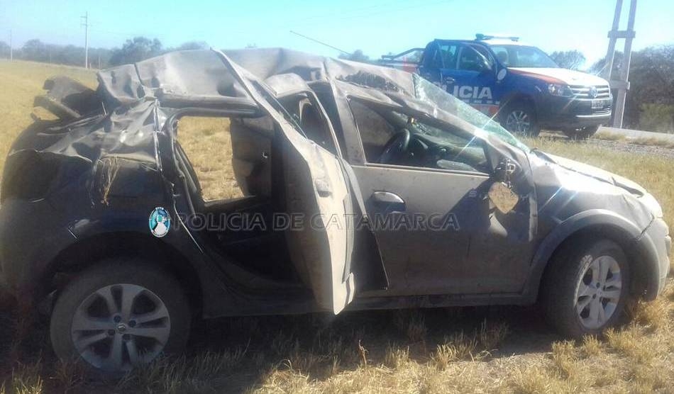 Héctor Eduardo González (38) circulaba en un automóvil Renault Sandero, dominio PLN-469, de color negro, y por razones que se tratan de establecer, perdió el control del rodado y terminó volcando en la banquina.