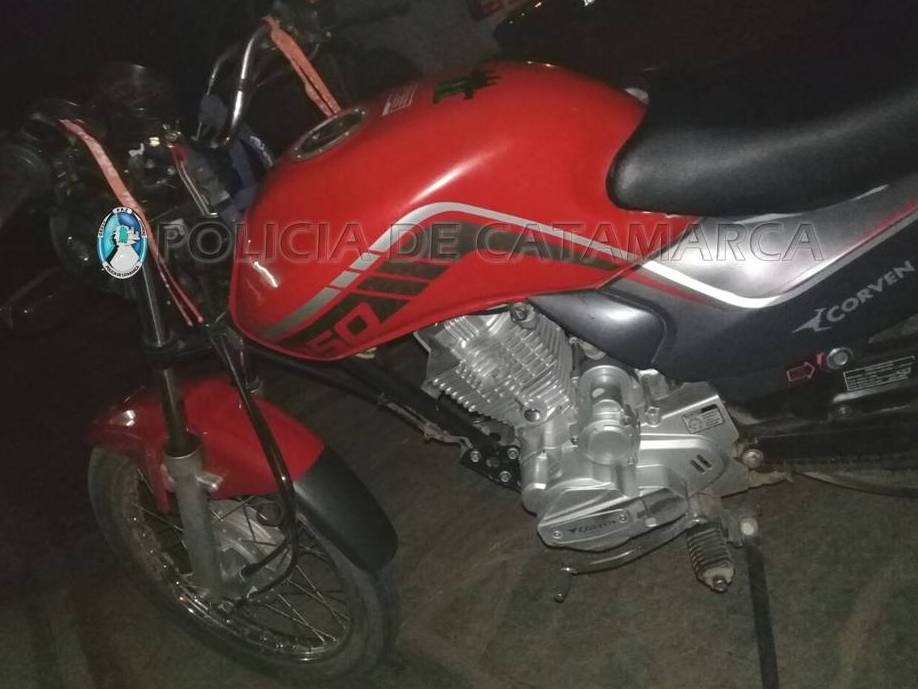 Ayer a la madrugada, luego de realizar averiguaciones y un minucioso trabajo investigativo, los efectivos sorprendieron infraganti a los aprehendidos en el interior del campo del denunciante a bordo de una motocicleta Motomel 150 cc., de color rojo, que fue secuestrada.
